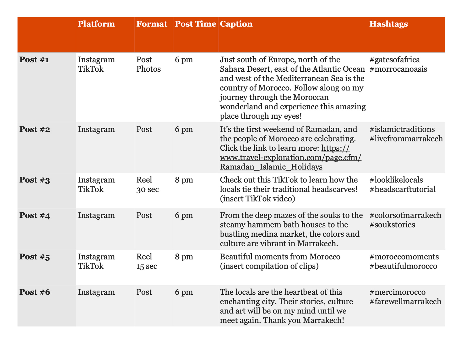 Social Media Editorial Calendar and Travel Photography for Social Media Project